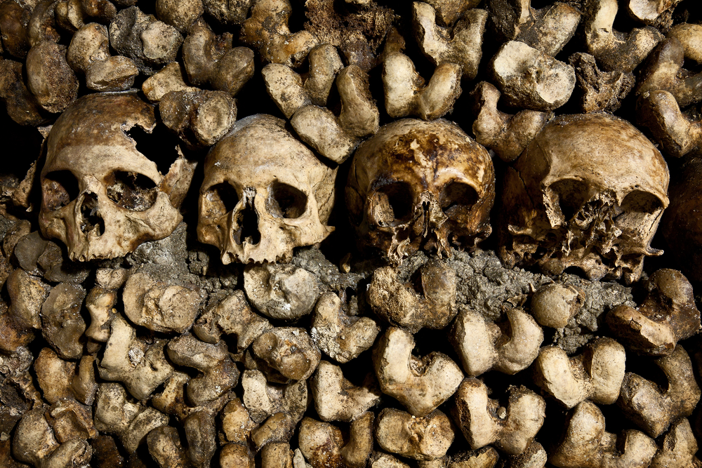 Muitos não sabem, mas embaixo da cidade do amor, existe um grande ossário, com ossos de mais de 6 milhões de pessoas. As chamadas catacumbas de Paris, o nome oficial é Ossário Municial, estão localizadas ao sul do portão da cidade. Sua história começa no século 5, quando o Saint Innocent se tornou o principal cemitério da cidade. O lugar era tão cheio, que para arrumar mais lugar para novos mortos, os corpos mais antigos eram exumados e seus ossos pilhados em galerias. Depois de 10 séculos de uso, medidas ineficientes, o lugar se tornou um fonte de doenças e infecções.