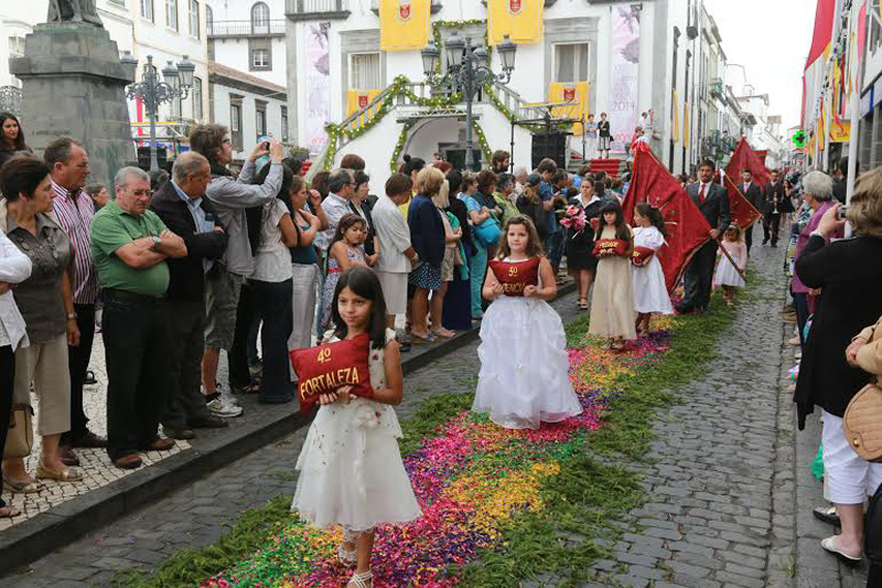 Na volta, demos de cara com as rua cobertas por flores (literalmente). Pensei que era para mim (rs), mas na verdade era para a Festa do Espírito Santo que acontece anualmente e é lindíssima!