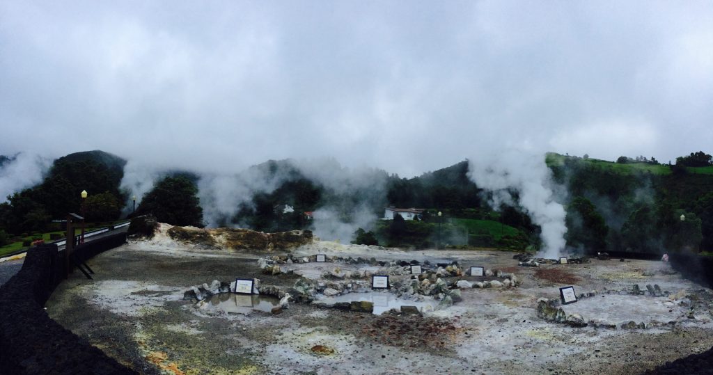 Fizemos o checkout no Açores Atlântico e com carro alugado da Ilha Verde Rent a Car, seguimos para a região das Furnas, bastante conhecida pelo cozido nas caldeiras vulcânicas naturais da Ilha, embaixo de muita chuva.