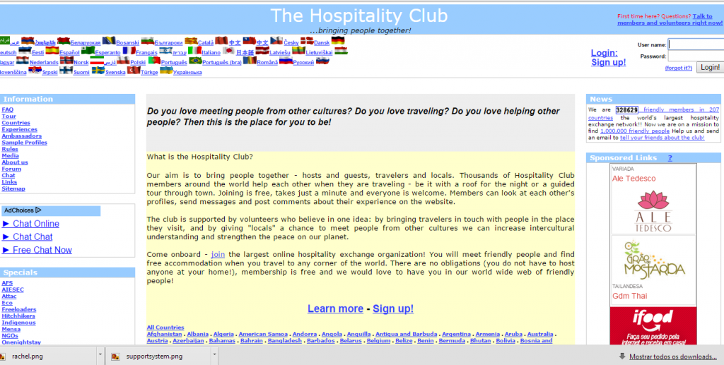 O HC é para quem é vintage no universo do turismo colaborativo. Fiquei muito curiosa ao receber minha primeira norueguesa em 2002. De lá já recebi até o Veit, fundador do HC e que inaugurou esse conceito mais de uma década atrás. Vale a menção honrosa ao site por ainda existir, e ter alguns membros ativos. Mas honestamente, as funcionalidades são tão antiquadas quanto o site.
