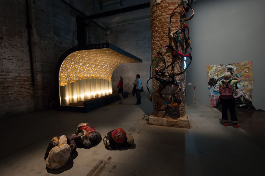 A Bienal de Artes está espalhada por toda a cidade, inclusive as curiosas instalações da Nova Zelândia, feita pelo artista Simon Denny, que representa o país nesta bienal, se encontram no Museu Correr, que possui um ótimo café com vista para a Piazza de San Marco. Aqui tem a lista completa de todos os lugares que participam da bienal.