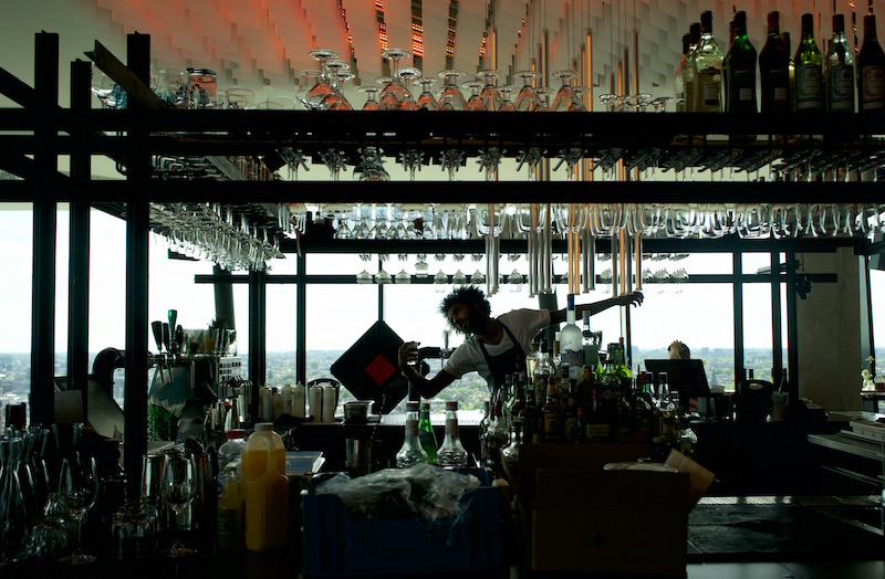 No meio do salão, o bar e restaurante Ma’Dam com mesas viradas para as grandes paredes de vidro. Drinks, cervejas e comidinhas são servidas por simpáticos garçons. Os preços, diferentemente do que pensamos, não é abusivo. Uma cerveja custa 5,50 euros, mas ali a boa pedida é mesmo uma taça de champagne como aperitivo. Após o sol se por, o espaço dá lugar à música se transformando no clube noturno mais alto de Amsterdã.