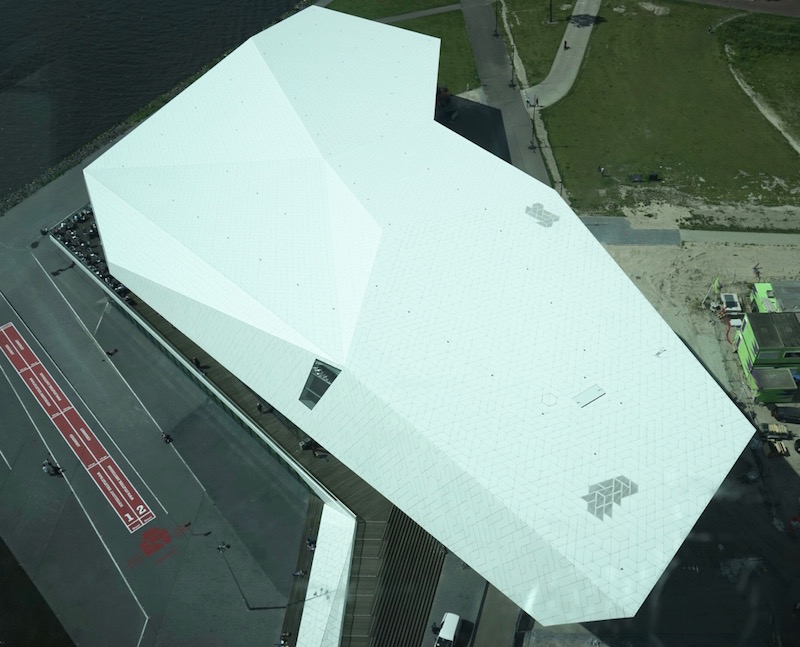 Na outra lateral o teto branco majestoso do Eye e todo seu entorno. As pessoas viram formiguinhas. Na parte detrás um grande campo de obra e guindastes mostram que a área norte de Amsterdã ainda trará muitas novidades para a cidade. Ansiosos esperamos.