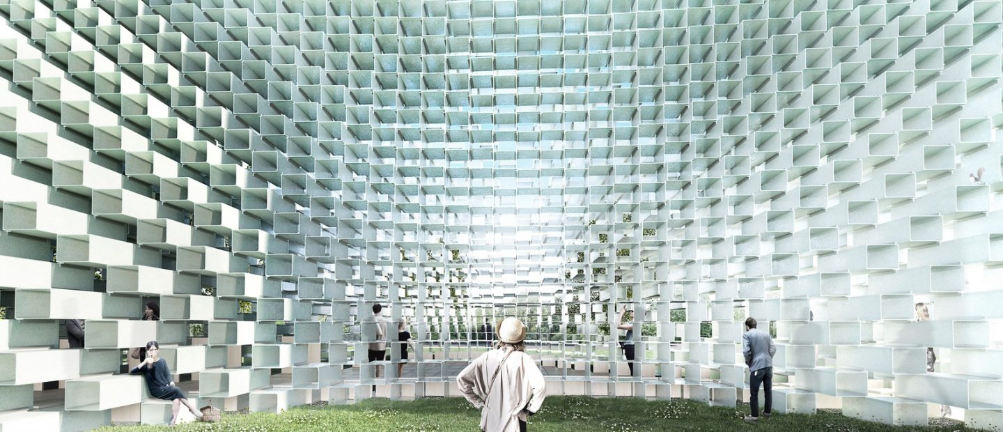 Na sua 15ª edição, o pavilhão desse ano surgiu da cabeça ultracriativa de Bjarke Ingels, fundador do escritório dinamarquês BIG. Como não poderia deixar de ser, o projeto dele é difícil de descrever. De um lado, um grande muro retangular formado por pequenas caixas. Do outro, uma forma ondulante que aponta para o céu. A ideia do arquiteto era juntar elementos aparentemente incompatíveis em um volume híbrido: ao mesmo tempo transparente e opaco, rígido e sinuoso. A referência usada por Ingels foi o trabalho de Jørn Utzon, arquiteto conterrâneo responsável pela Ópera de Sydney.