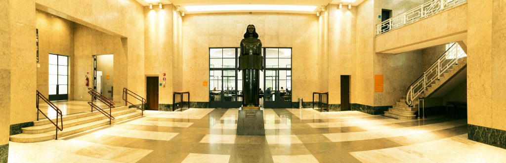 O guardião deste imponente edifício é simplesmente Luís de Camões. A estátua do grande escritor português fica em frente ao prédio e acho que se ele estivesse vivo, estaria orgulhoso da repaginação da biblioteca.