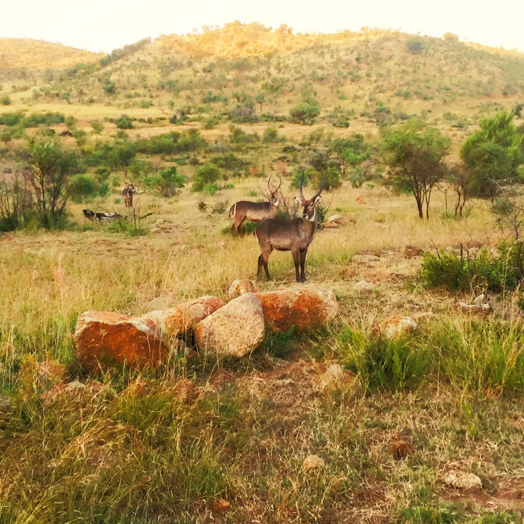 O entardecer na savana é algo indescritível: o sol torna o campo laranja, os animais saem da sombra e começam a se movimentar. A brisa da noite traz um cheiro que lembra o eucalipto. E quando você lembra que deveria ter trazido um casaco, saltam da mão do Shane cobertores fofinhos para você se preocupar apenas com as cheetahs, ou guepardos em português. (Ok, parecem onças. Mas tive que ver no Google que não são.)