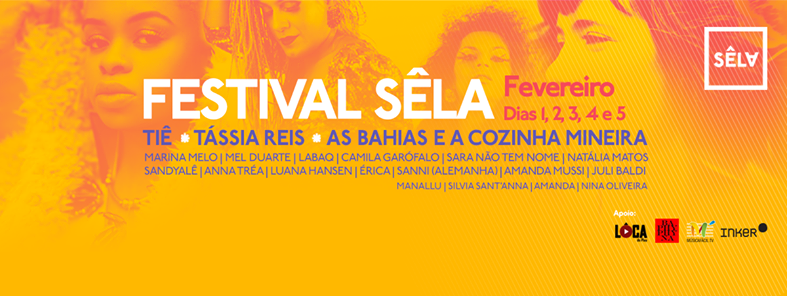 O selo SÊLA surgiu para reunir cantoras, compositoras, produtoras e instrumentistas para criar, produzir e divulgar seu próprio trabalho. Dele, vem essa primeira edição do festival, que contará com nomes conhecidos fechando cada um dos 3 dias de evento: Tiê, As Bahias e a Cozinha Mineira e Tássia Reis. A abertura fica por conta de cantoras de todo o Brasil representadas pelo selo.