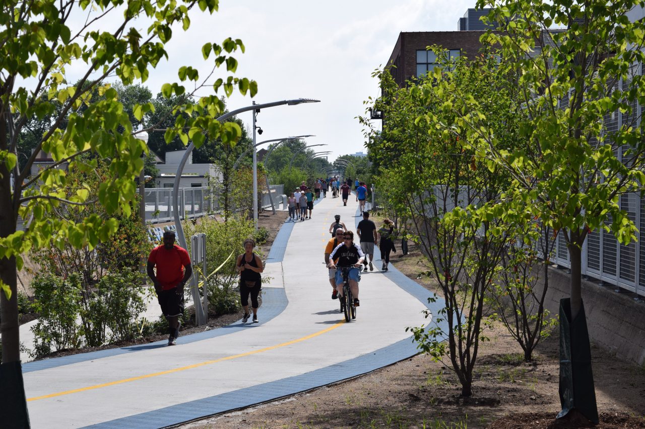 Após um latte no La Colombe Coffee Roasters, comece o dia com uma caminhada na 606. Essa antiga linha de trem abandonada virou uma mistura de ciclovia com área de lazer de mais de quatro quilômetros de extensão. Admire de cima os prédios de tijolinhos, confira as esculturas espalhadas pelo parque e pergunte ao chicagoan a passear com o cachorro que clube de comédia ele indica. O melhor acesso à 606 é a partir de Bucktown, pela Bloomingdale Trail.
