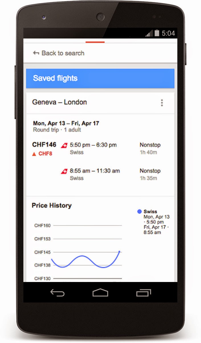 E você pode pedir para ferramenta para monitorar os preços para comprar quando estiver mais barato. Ele salva a lista do vôo que você está procurando, e se os preços estiverem subindo ou caindo, ele pode te avisar. No Google Now já existe uma aba que notifica quando mudar o preço.