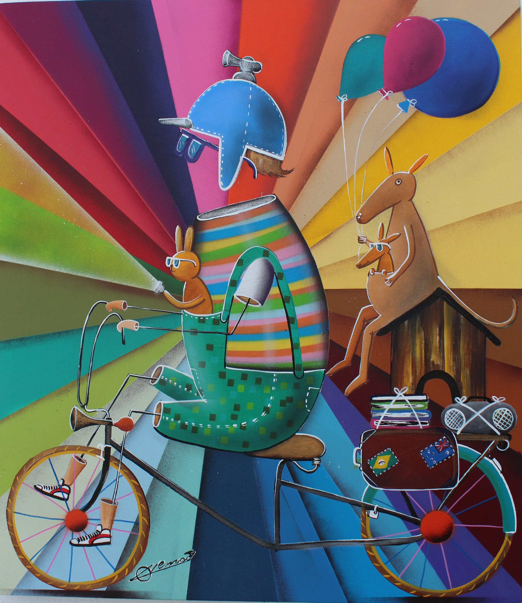 Ou seja: Onírico, Universal, Lírico e Lúdico. Esses são também instrumentos de trabalho do artista plástico e grafiteiro paulista Anderson Ferreira Lemes, o Alemão. Em todos os quadros, além de muita cor, a bicicleta. Ou seja: o desejo de liberdade que nos torna humanos. Atualmente, cerca de 350 obras de Alemão estão presentes nos cinco continentes. Sobre as características de suas obras, ele ressalta: “Minha arte incorpora uma certa falta de identidade, o que permitiu um reconhecimento maior por parte do público com os personagens ilustrados em minhas telas, que carecem de uma identidade facial”.