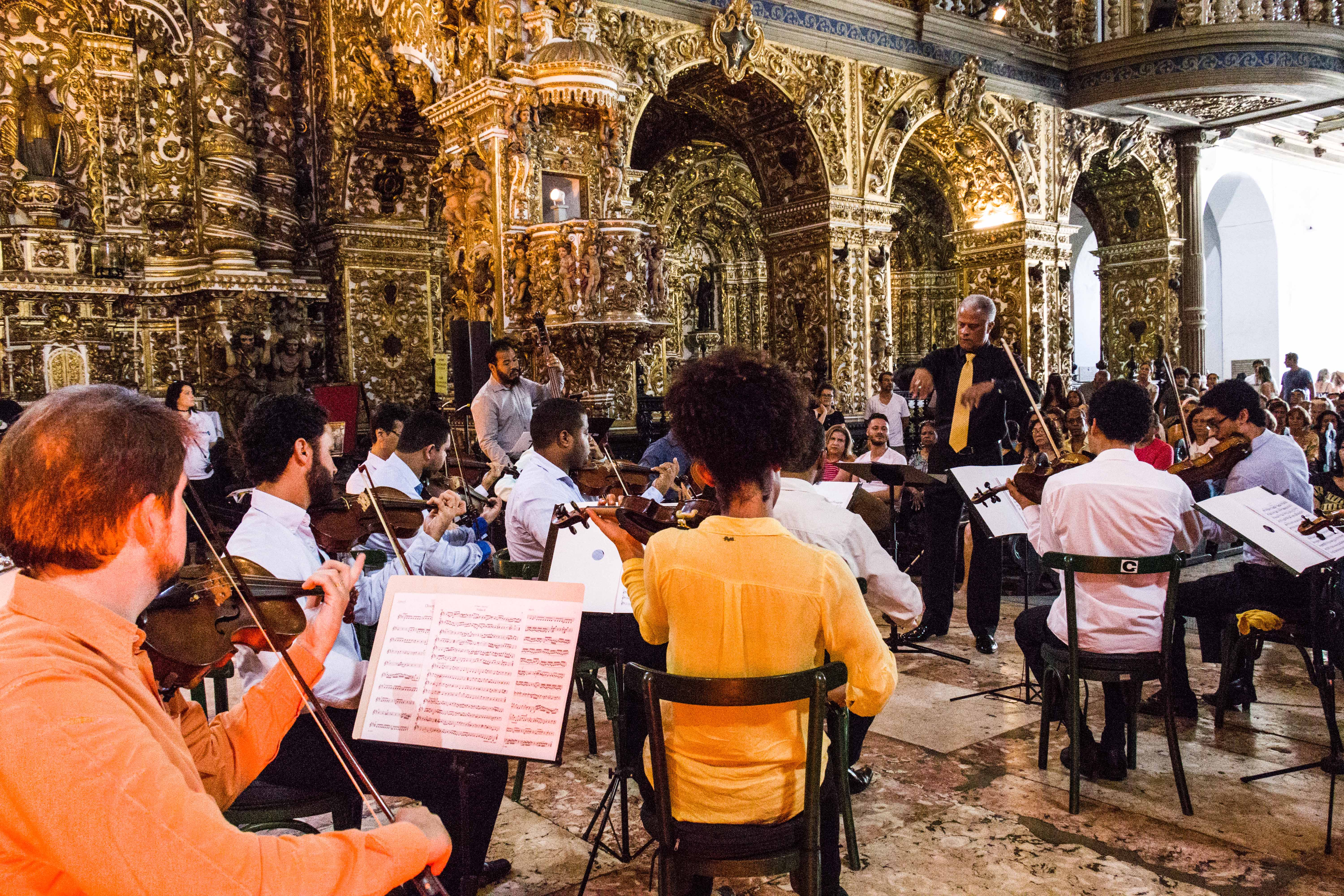 As igrejas do Centro Histórico de Salvador agora abrigam, em forma de residência artística, o Popelô – Polo de Orquestras do Pelô. Esta é uma ação do Pelourinho Dia e Noite, da prefeitura de Salvador, que dá apoio ao amadurecimento da pesquisa musical singular feita na capital baiana pelas orquestra. A ideia é sedimentar o gênero próprio de música que é produzido por elas na cidade, através de ensaios abertos, concertos e missas orquestradas. Neste fim de semana o Popelô é com o Maestro Ângelo Rafael.